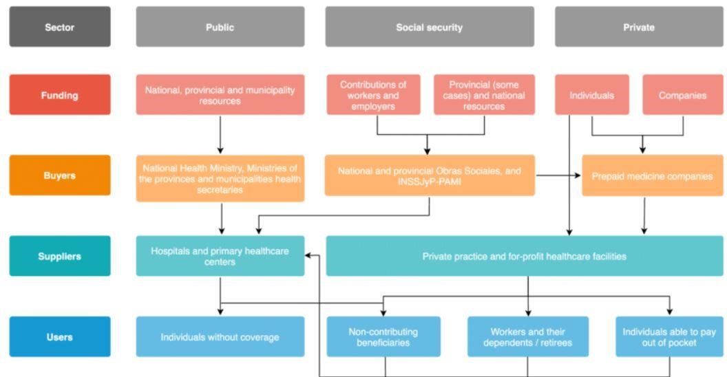 The vastness of the topics covered under healthcare can be overwhelming. As seen in the diagram above from Palacios et al’s breakdown from Argentina’s healthcare system, it can become non-linear quickly. The intersectionality of healthcare definitions also muddle defining each nation's healthcare system. For example, within the United States there are healthcare models that include both non-universal and private healthcare.